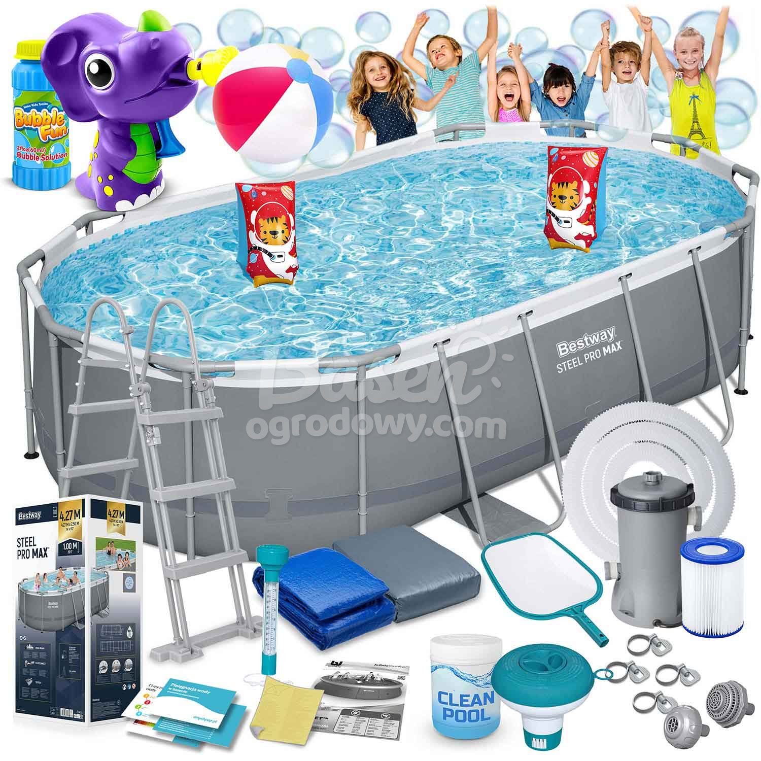 - Wymiary zewnętrzne basenu 427 x 290 x 100 cm