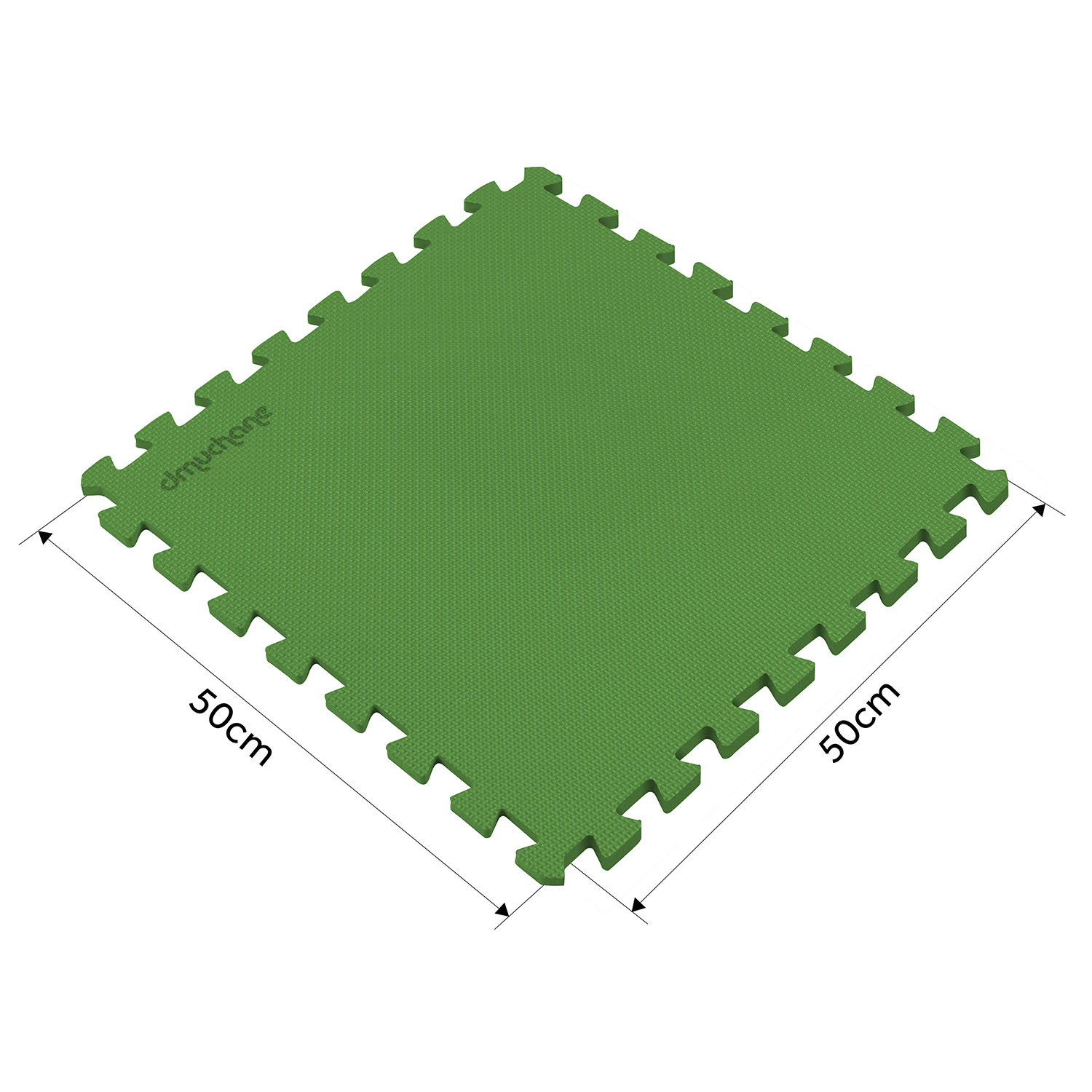 Zestaw składa się z 8 mat o łącznej powierzchni 1,9 m2, które możesz dowolnie ze sobą łączyć. Matę wykonano z mocnego tworzywa, które zapewnia ochronę i jest miękkie.