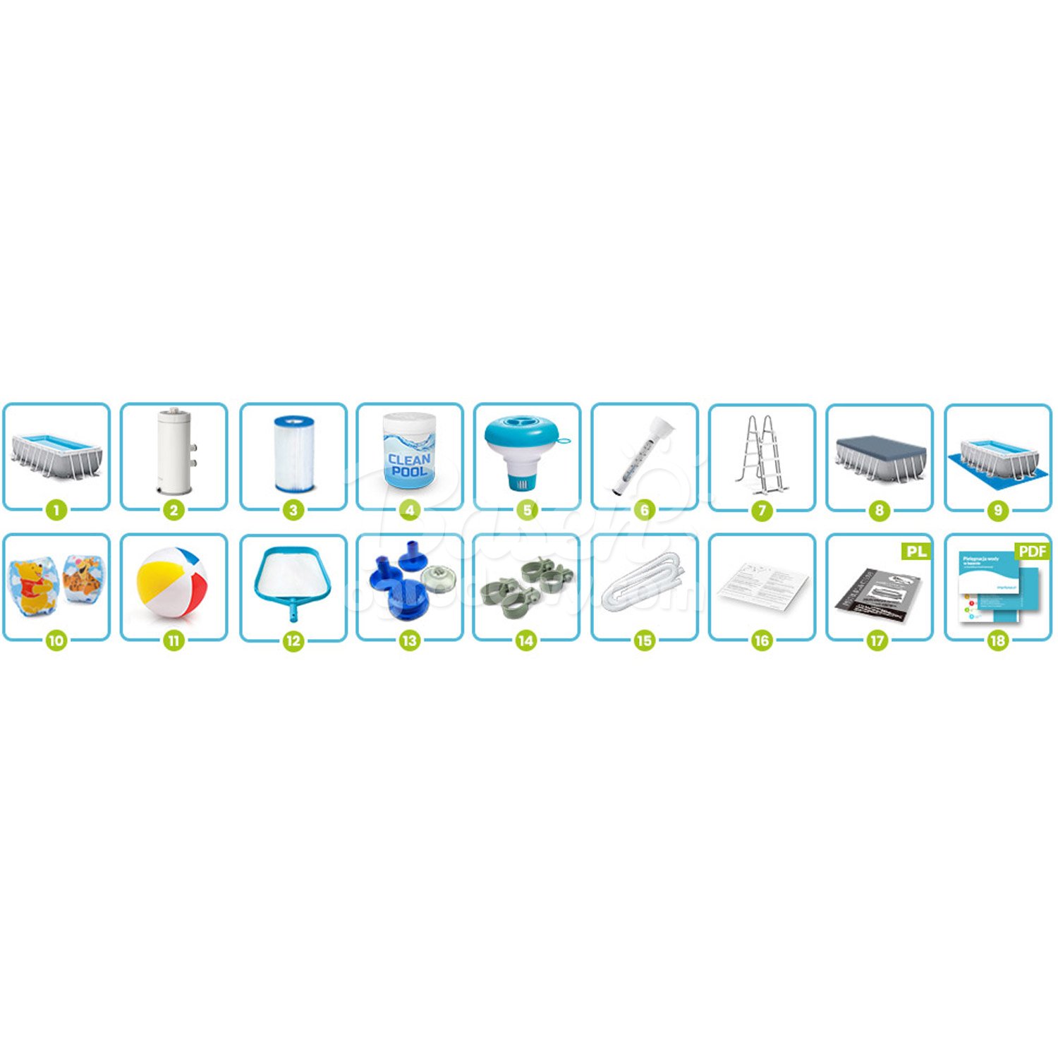 Basen stelażowy 488 x 244 x 107 cm ★★★★★ MEGA ZESTAW 18w1