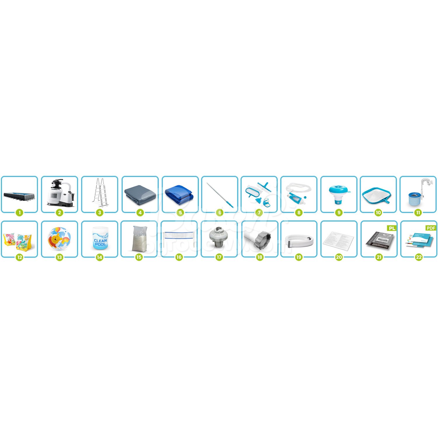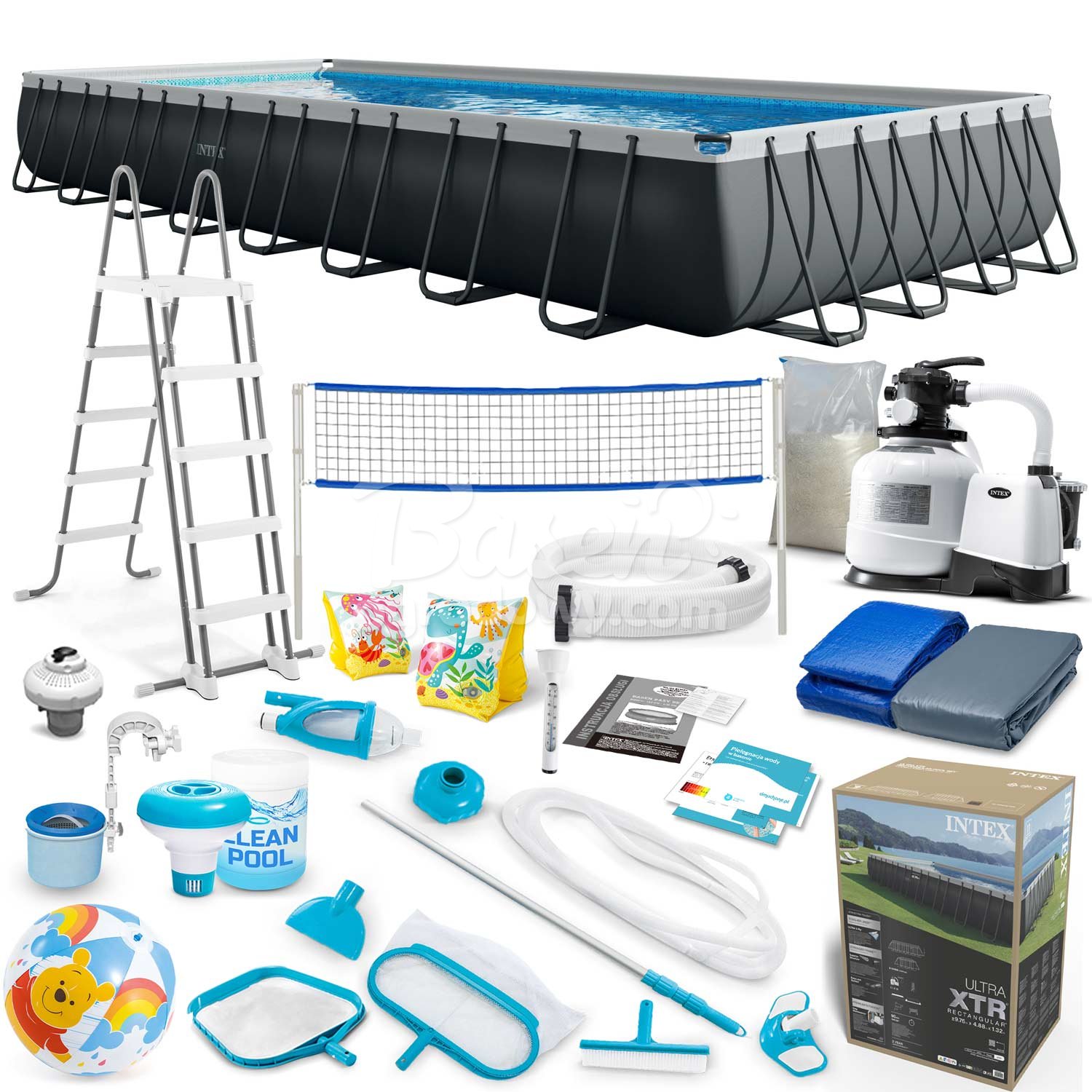 Basen stelażowy 975 x 488 x 132 cm ★★★★★ ZESTAW 22w1