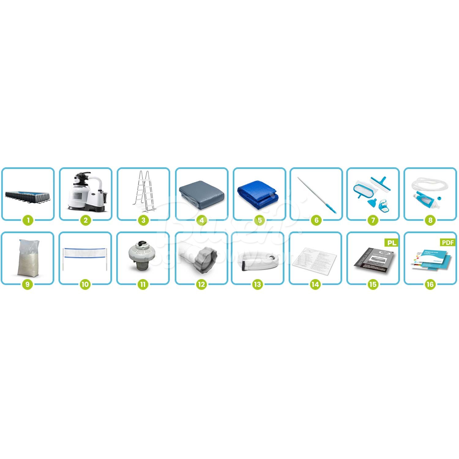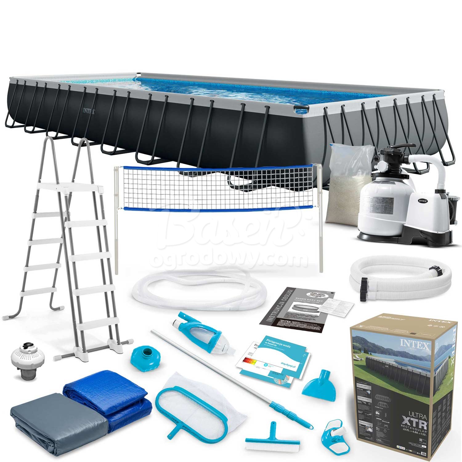 Basen stelażowy 975 x 488 x 132 cm ★★★★★ ZESTAW 15w1