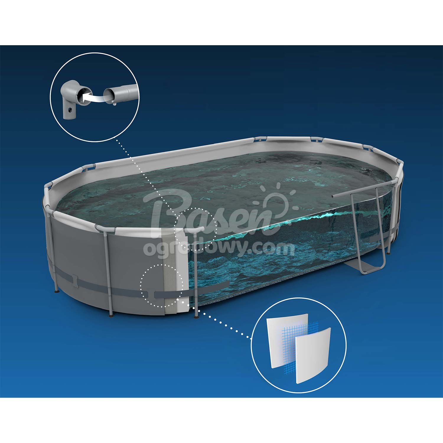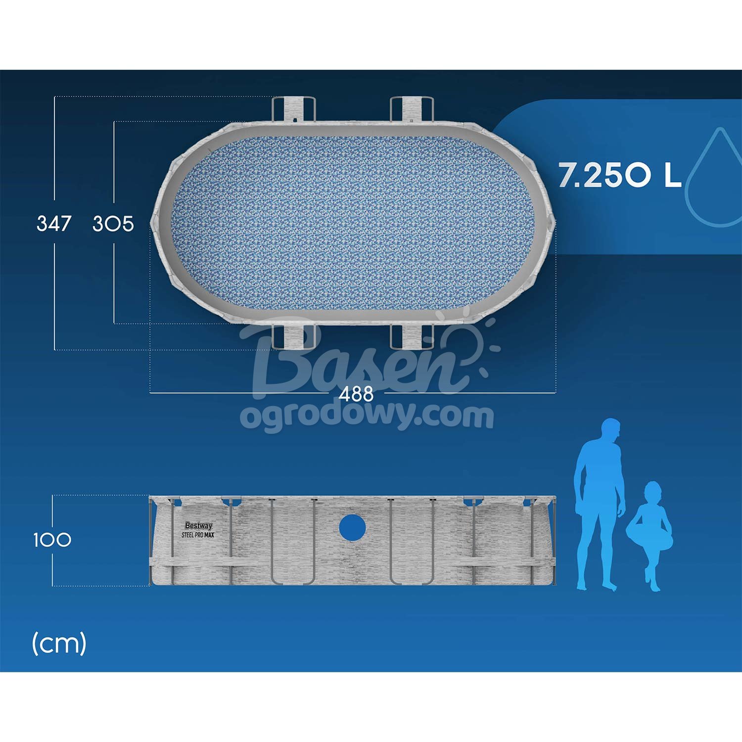- Wymiary zewnętrzne basenu 427 x 290 x 100 cm