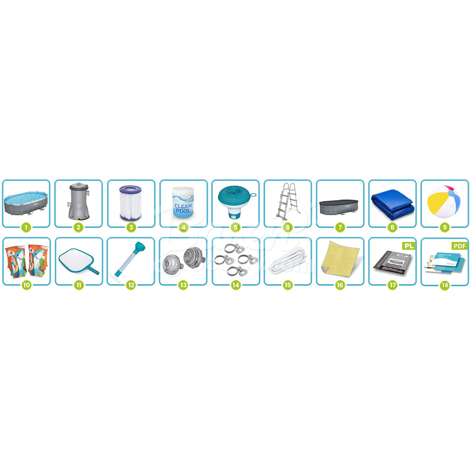 Basen ogrodowy stelażowy Power Steel 488 x 305 x 107 cm ★★★★★ MEGA zestaw 18w1