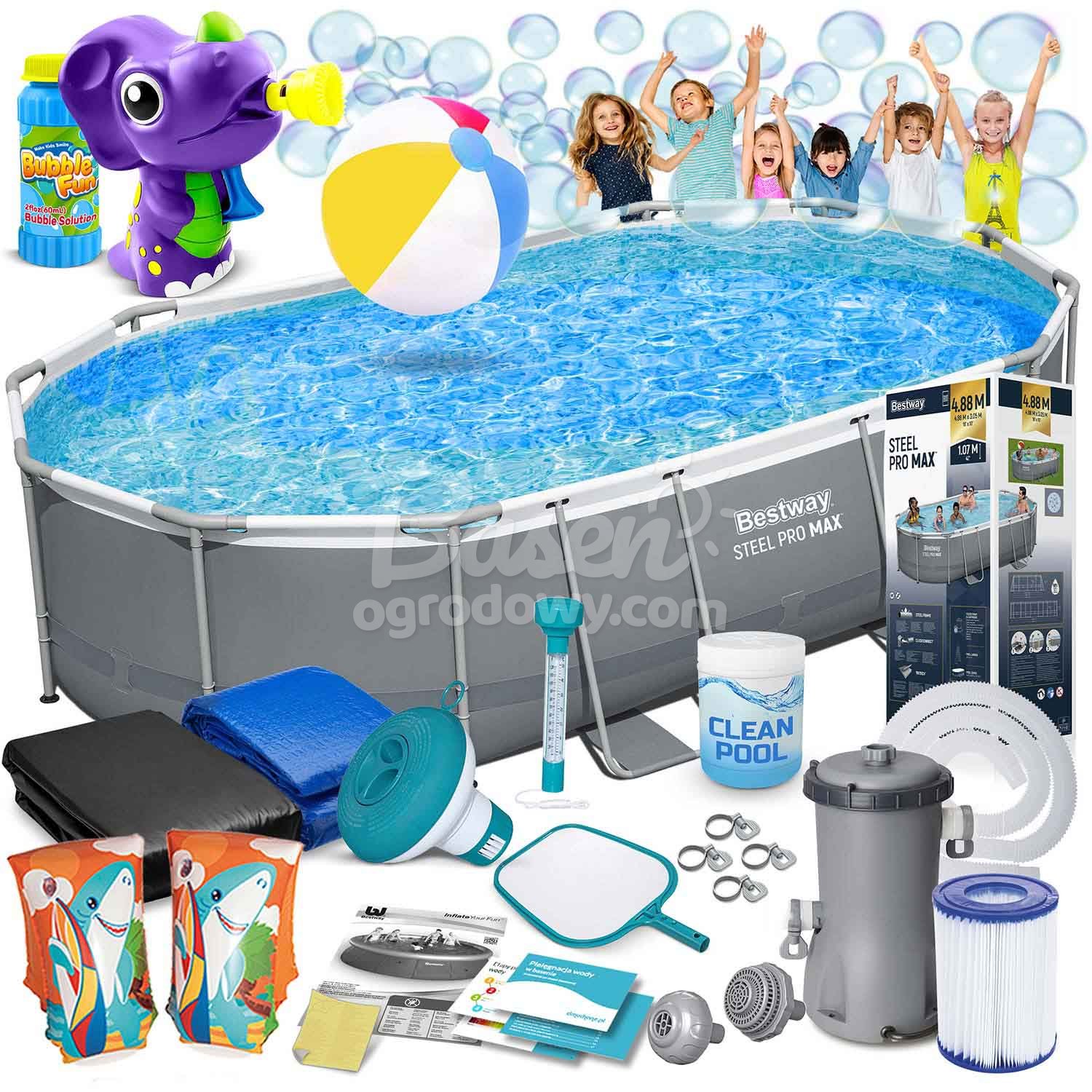 Basen ogrodowy stelażowy 488 x 305 x 107 cm 18w1 Bestway 56448 + maszynka do baniek GRATIS