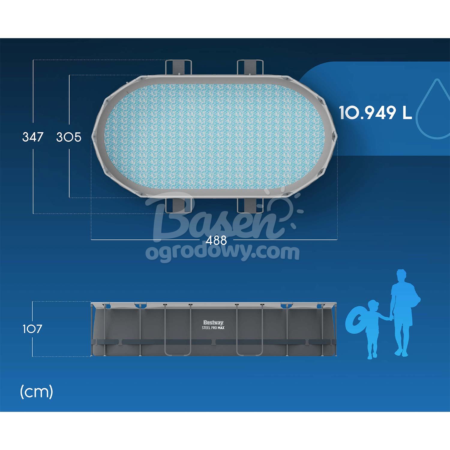 - Wymiary zewnętrzne basenu 488 x 347 x 107 cm