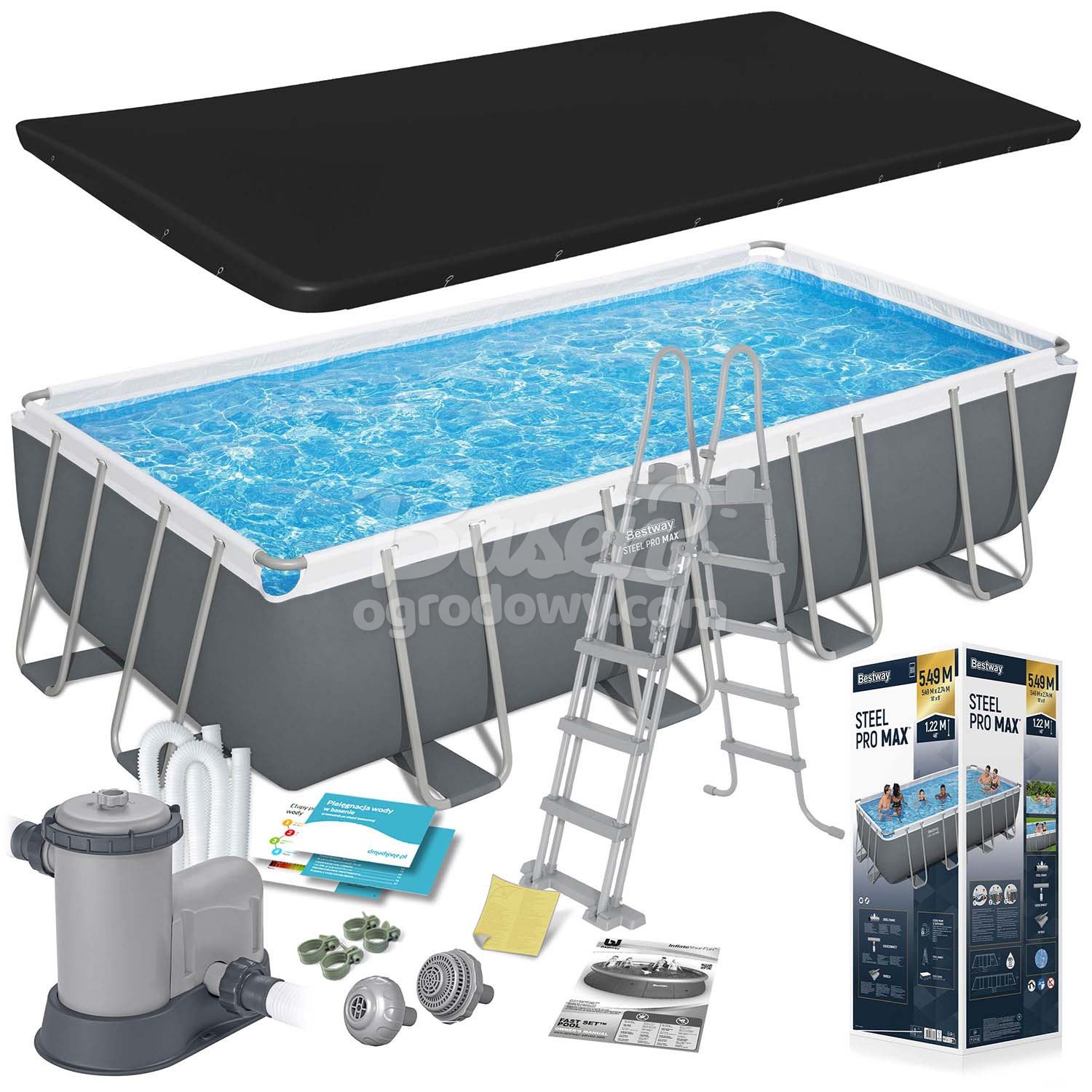 - Wymiary niecki basenowej 549 x 274 x 122 cm