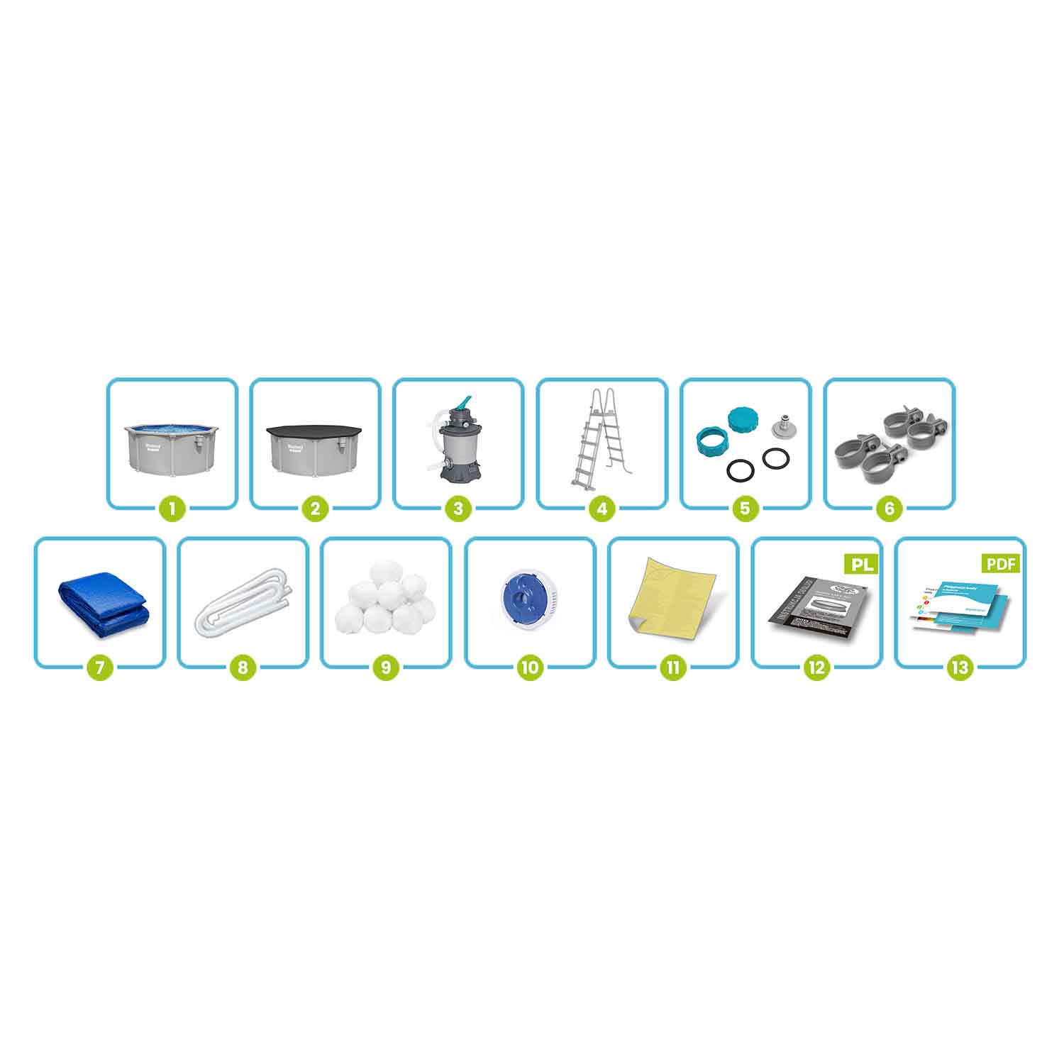 ✔️ Pompa filtrująca i kulki filtrujące Polysphere™ do pompy w zestawie.