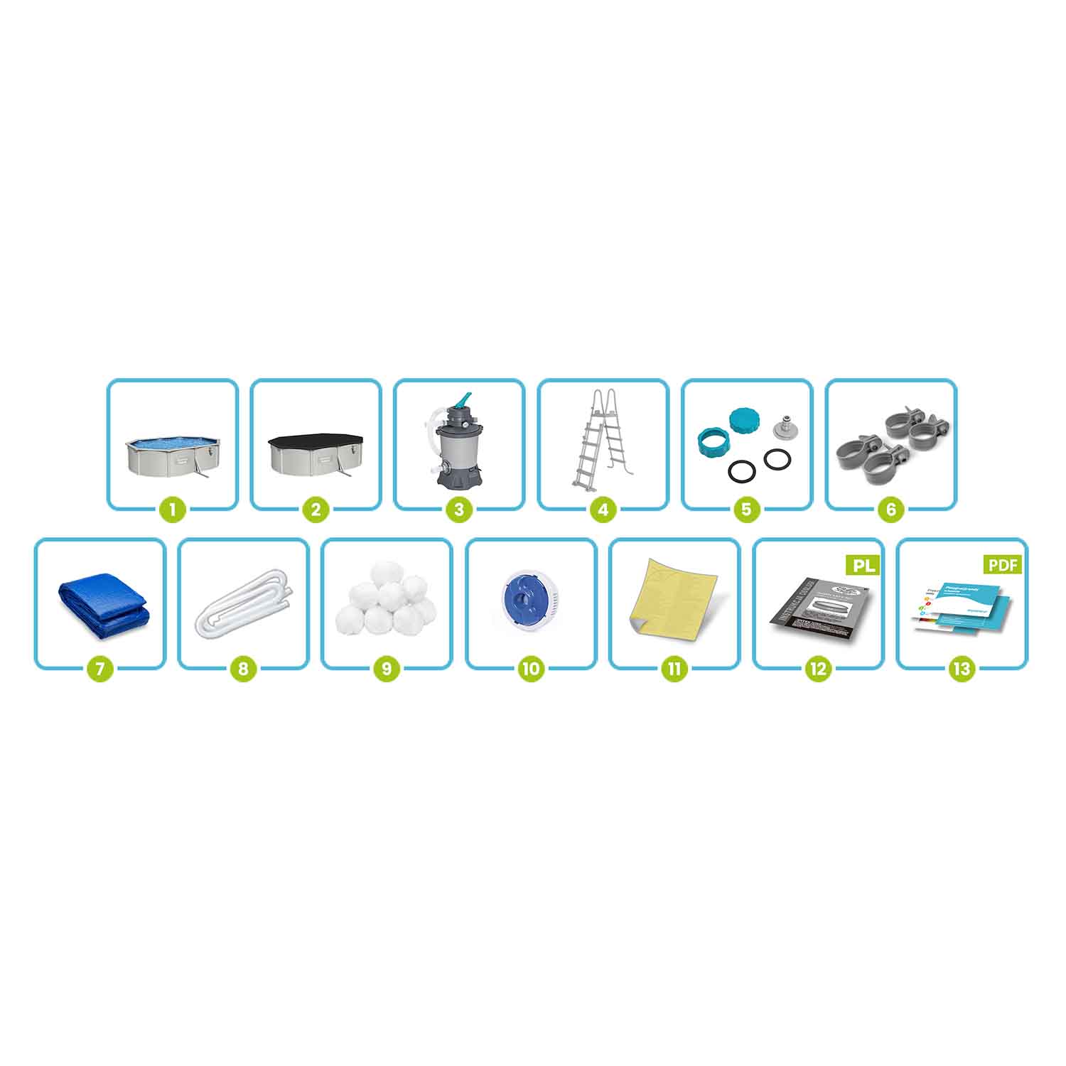 Wytrzymała powłoka PVC – odporna na uszkodzenia mechaniczne, promieniowanie UV i chemię basenową.