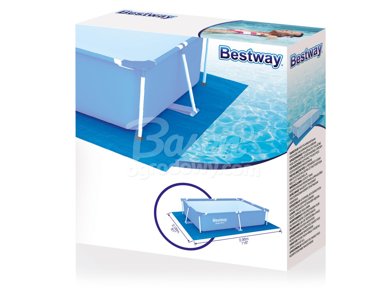 Mata pod basen prostokątny Bestway, zabezpiecza dno basenu przed uszkodzeniem.